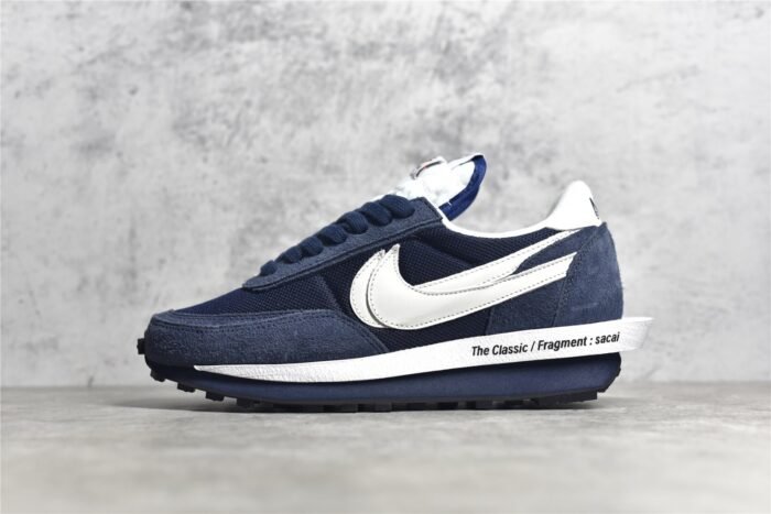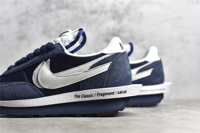 The Sacai 1.0 Fragment – Dark Blue stands out with its refined and modern design. This sneaker features a mix of dark blue suede and mesh accents. offering a sleek and stylish look. The double-layered construction adds a unique twist. while the padded collar and tongue provide extra comfort. The foam midsole delivers lightweight cushioning. perfect for all-day wear. A durable rubber outsole enhances traction and grip. This pair blends contemporary style with everyday functionality. making it a must-have for sneaker enthusiasts.