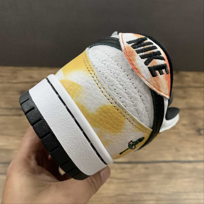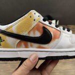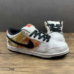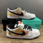 The SB Dunk Low Raygun Tie-Dye White (BQ6832-101) pays homage to Nike’s iconic “Raygun” theme with a fresh. tie-dye twist. This sneaker features a white leather upper adorned with vibrant tie-dye patterns. capturing attention with its bold and playful design. The Nike Swoosh and heel tab contrast in bright orange. adding a pop of color against the white backdrop. With a padded tongue and Zoom Air unit in the heel for cushioning. this Dunk Low combines style and comfort seamlessly. Finished with a durable rubber outsole. it’s perfect for both skateboarding and casual wear.
