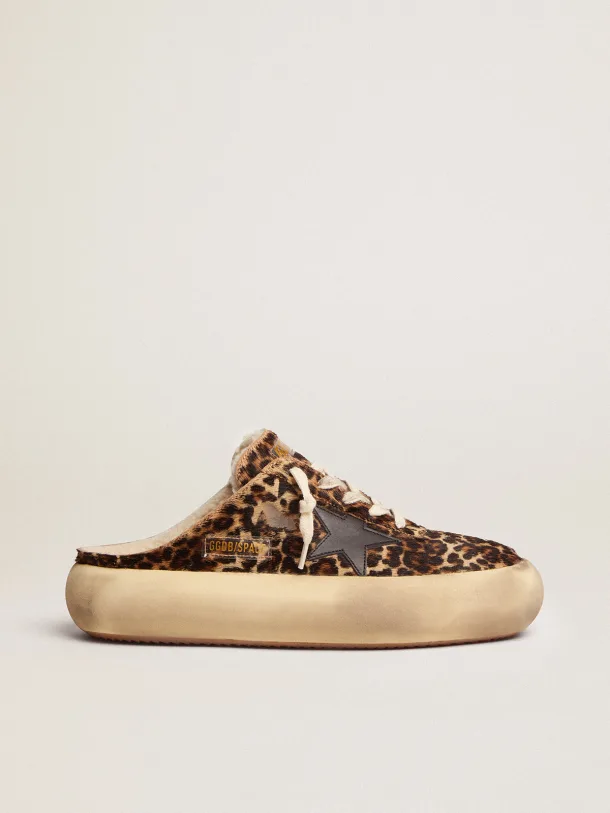 The Space-Star Sabot shoes stand out with their bold design and luxurious materials. These iconic sabot shoes feature animal-print pony skin with a cozy shearling lining. offering a wild yet warm look. The pony skin material ensures durability and a striking appearance. while the shearling lining adds comfort and warmth. The slip-on design allows for easy wear. and the durable rubber outsole enhances traction and grip. This pair blends fashion with functionality. making it a must-have for style enthusiasts.