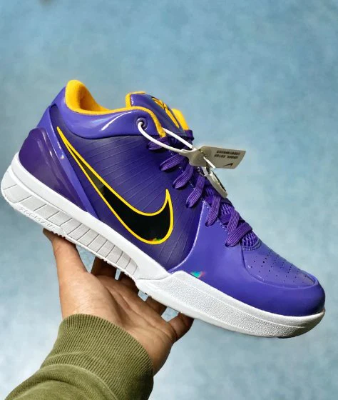 The Undefeated x Nike Kobe 4 Protro ‘Lakers’ is a special edition collaboration between Nike and the streetwear brand Undefeated. celebrating Kobe Bryant’s association with the Los Angeles Lakers. This version typically features: