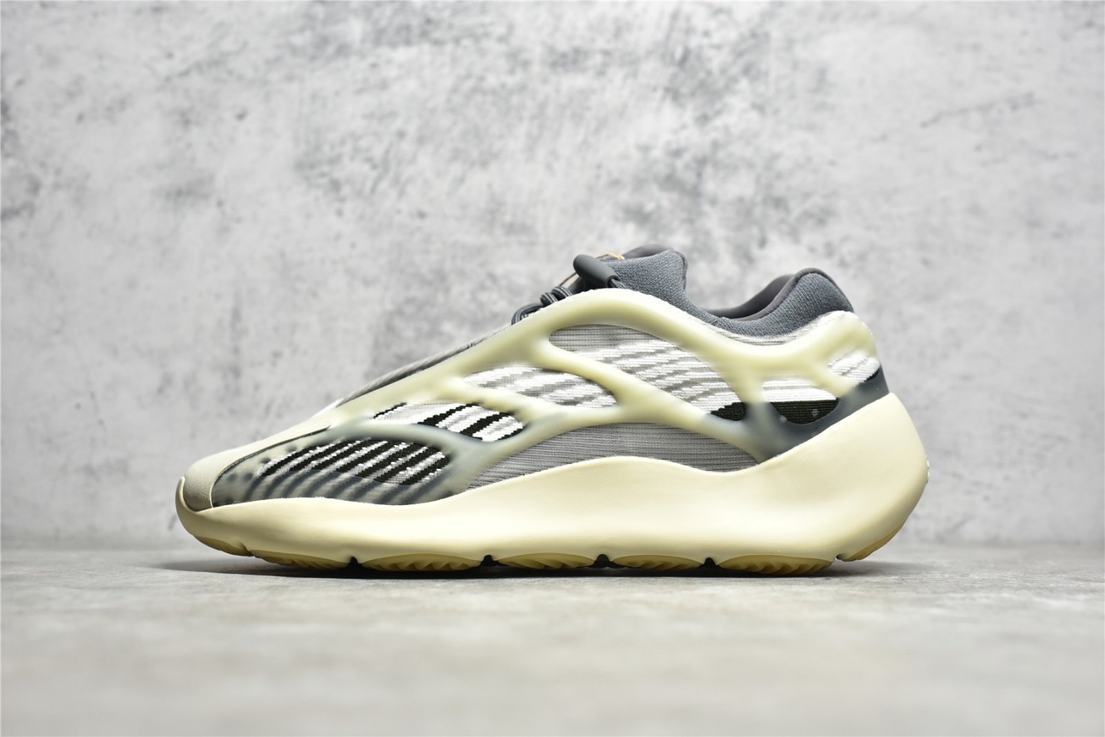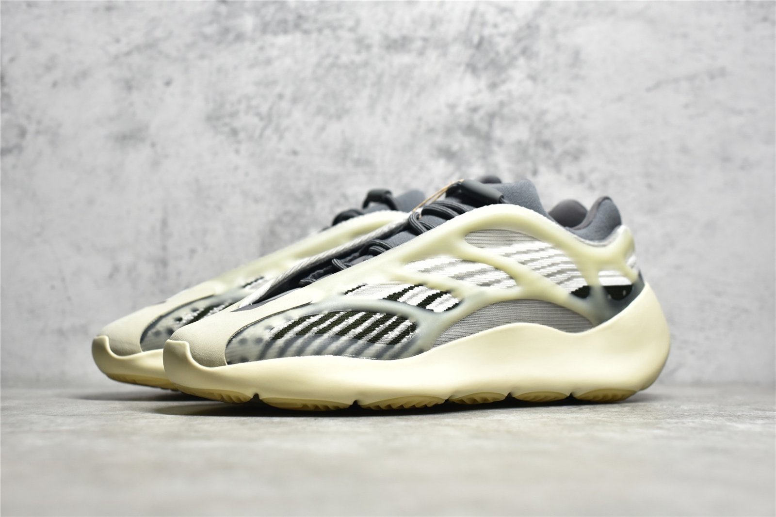 The Yeezy 700 V3 Fade Salt stands out with its sleek design and subtle colorway. This stylish sneaker features a blend of gray and off-white tones. offering a refined and modern look. The RPU and mesh upper ensures durability and breathability. while the EVA midsole provides lightweight cushioning. The rubber outsole enhances traction and grip. perfect for all-day wear. This pair blends contemporary style with advanced technology. making it a must-have for sneaker enthusiasts.